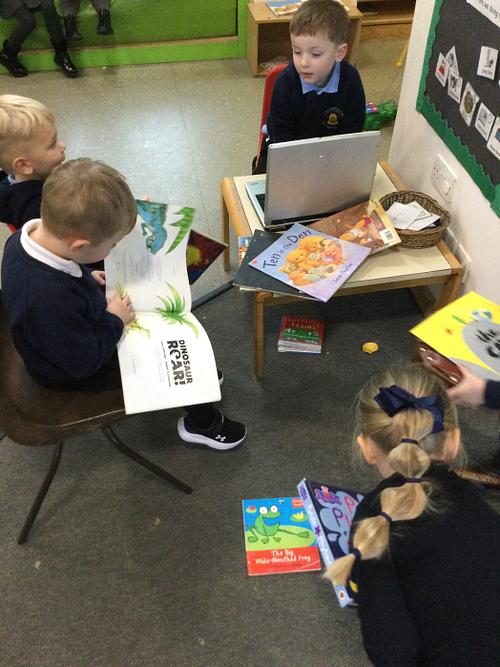 Here we have some of our Nursery children reading independently to each other!