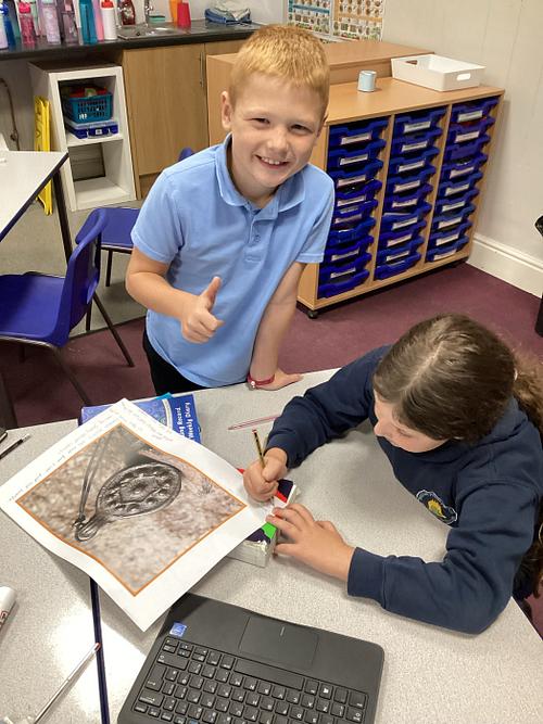 As part of our Dojo Awards, we achieved a No Pen Day and we were creative with our learning! In Maths, we played a times table game and in English we created a scene from our book, 'Viking Boy'!
